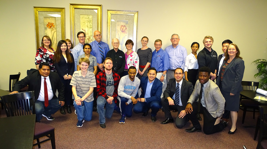Maxwell Murray (front row, far right) was offered a job on the spot after presenting his team's solutions to the real project given to his class by Syscon International. This unique project was a major collaboration between the School of Business Administration and the Department of Visual Art, Communication & Design.
