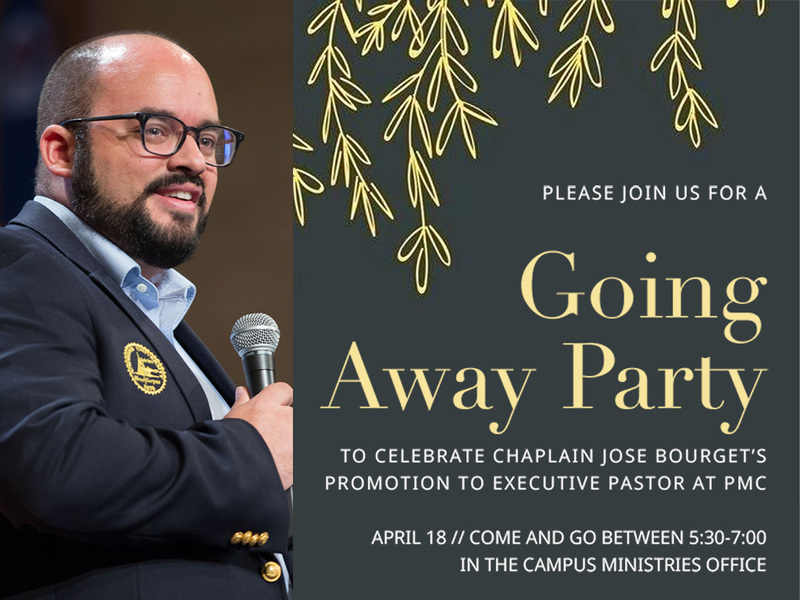 Please join us in honoring his many years of service as a campus chaplain and celebrating his promotion to executive pastor.