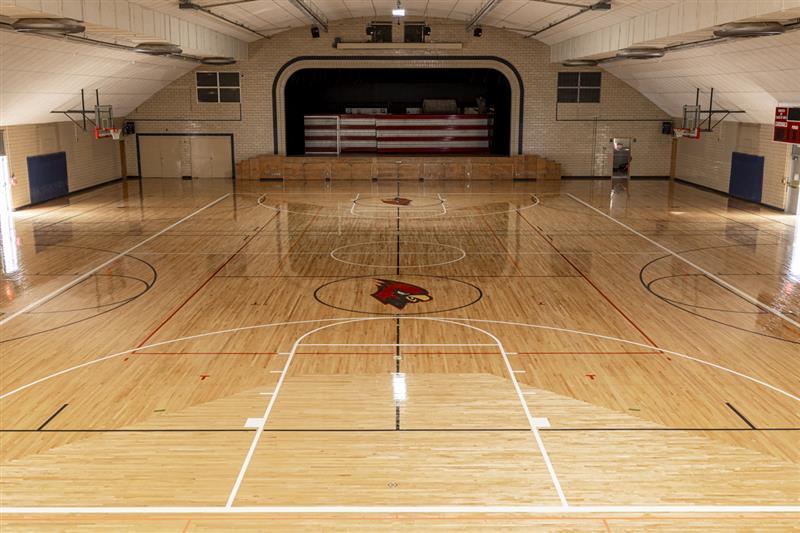 The floor of the Johnson Gym was refinished during the winter break. (Photo by Darren Heslop)