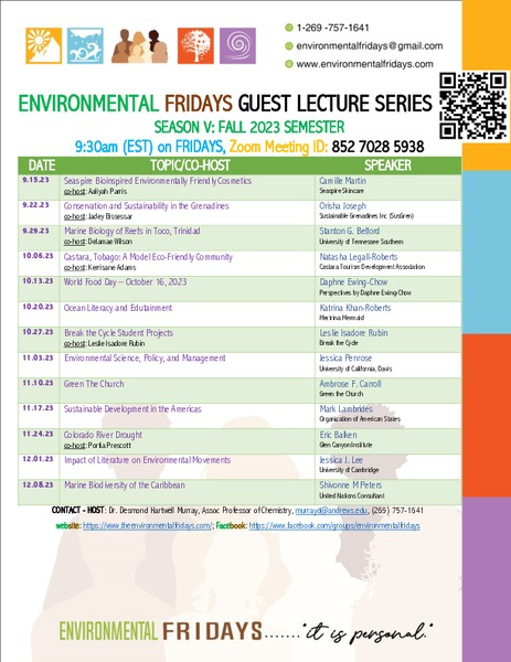 Please note the Environmental Fridays schedule for the 2023–2024 academic year.