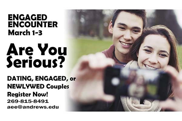 Andrews University will host Adventist Engaged Encounter (AEE) the weekend of March 1–3, 2019. AEE is an enrichment weekend for seriously dating, engaged and recently married couples. It offers insights and tools for couples to develop their relationship... read more