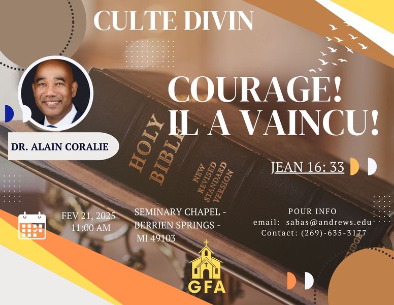 Worship will be at 11:45 a.m. with Pastor Alain Coralie in the Seminary chapel.